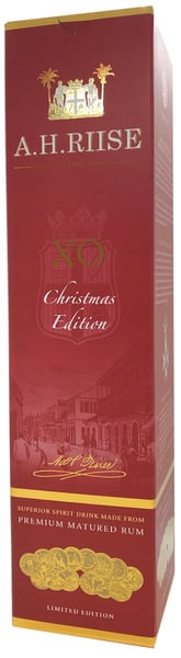 Denne "Christmas Rum" er baseret på den populære A. H. Riise XO Reserve, som "juleforkæles" med ekstra fadfinish på brugte PX Sherry-fade.