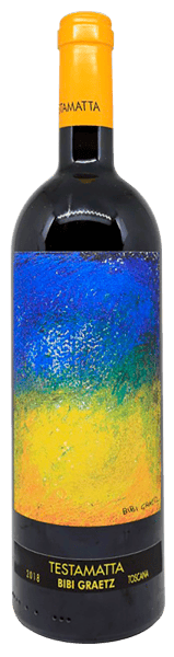 Som winemaker er Bibi befriende autonom. Han blæser højt og flot på de ensrettende regelsæt for DOC og DOCG - og stortrives med Toscana IGT’s langt mere flagrende rammer for kreativ udfoldelse. Anført af ikoniske Testamatta og Colore, der begge fejrer 20 års jubilæum i årgang 2019, er resultatet en serie helt unikke og ekstremt spændende vine. Alle iklædt kunstnerens egne, farvestrålende etiketter.