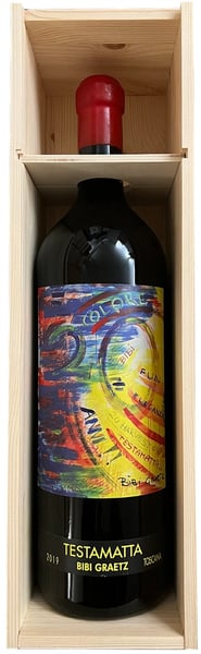 Som winemaker er Bibi befriende autonom. Han blæser højt og flot på de ensrettende regelsæt for DOC og DOCG - og stortrives med Toscana IGT’s langt mere flagrende rammer for kreativ udfoldelse. Anført af ikoniske Testamatta og Colore, der begge fejrer 20 års jubilæum i årgang 2019, er resultatet en serie helt unikke og ekstremt spændende vine. Alle iklædt kunstnerens egne, farvestrålende etiketter.
