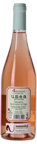 Bodegas Caudalia Umea Rosé 2023 er lavet på 100% Garnacha (Grenache), der selekteres fra kalkholdige marker 635 meter over havets overflade i subzonen Baja Montaña i Navarra. Efter en indlednende koldmaceration følger gæringen på betontank, hvortil der kun anvendes den mest delikate "free run" druemost.