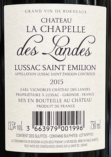 Château La Chapelle des Landes Lussac Saint Émilion 2015