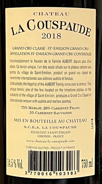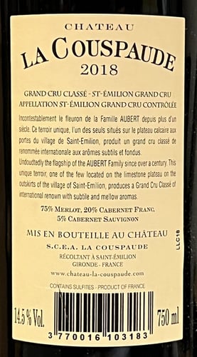 Château La Couspaude Saint-Émilion Grand Cru Classé 2018 i trækasse