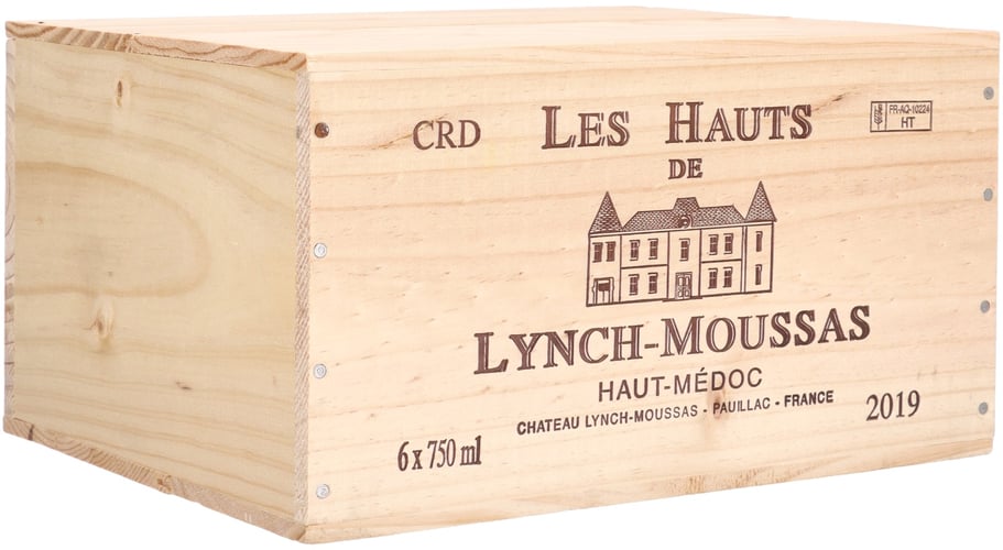 Les Hauts de Lynch-Moussas er blevet fremstillet siden 2001 og er i årgang 2019 produceret på et blend bestående af 52 % Cabernet Sauvignon og 48 % Merlot, der håndhøstes og dobbeltsorteres ved ankomst til slottet. Vinificeringen sker plot for plot og i kælderen modnes vinen på franske barriques i 14-24 måneder afhængigt af årgangen. Egetræsfadende kommer fra 7 forskellige bødkere, som på hver sin måde bidrager til vinens krydrede kompleksitet.