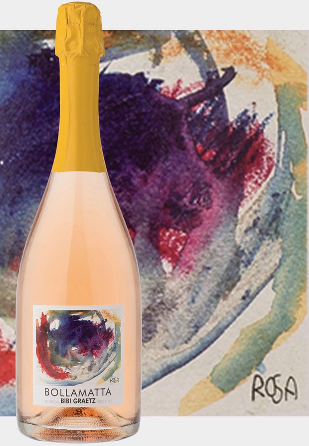 Kultvinmageren Bibi Graetz er ganske enkelt genial. Til sine eksklusive rosébobler anvender han den ”grønne høst” fra sin 100 points topvin, som laves 100 % Sangiovese fra udvalgte marker i Toscana.