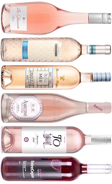 Glæd dig til ægte Côtes de Provence-rosé fra Chateau Terrebonne, sydfranske Bleu de Mer fra Bernard Magrez, topsælgeren Les Glaneuses og publikumsfavoritten Amicone. Du får også spanske Torre Oria Bobal og den powerfulde Entrecepas.